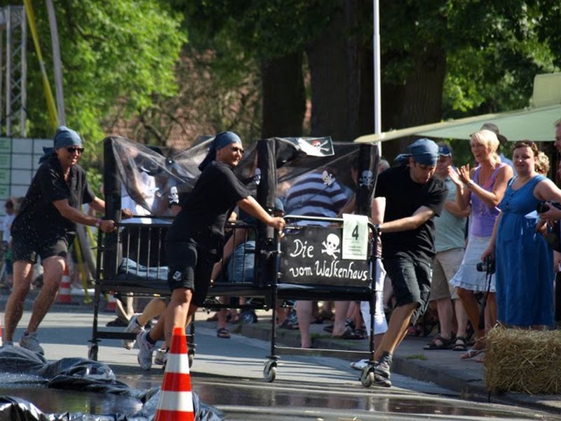 Fotoalben » Personal / Mitarbeiterteam » Mitarbeiterfeiern / -veranstaltungen (Beispiele) » Bettenrennen Mantinghausen Auch beim Bettenrennen in Mantinghausen konnte sich das Walkenhaus-Team sehen lassen.